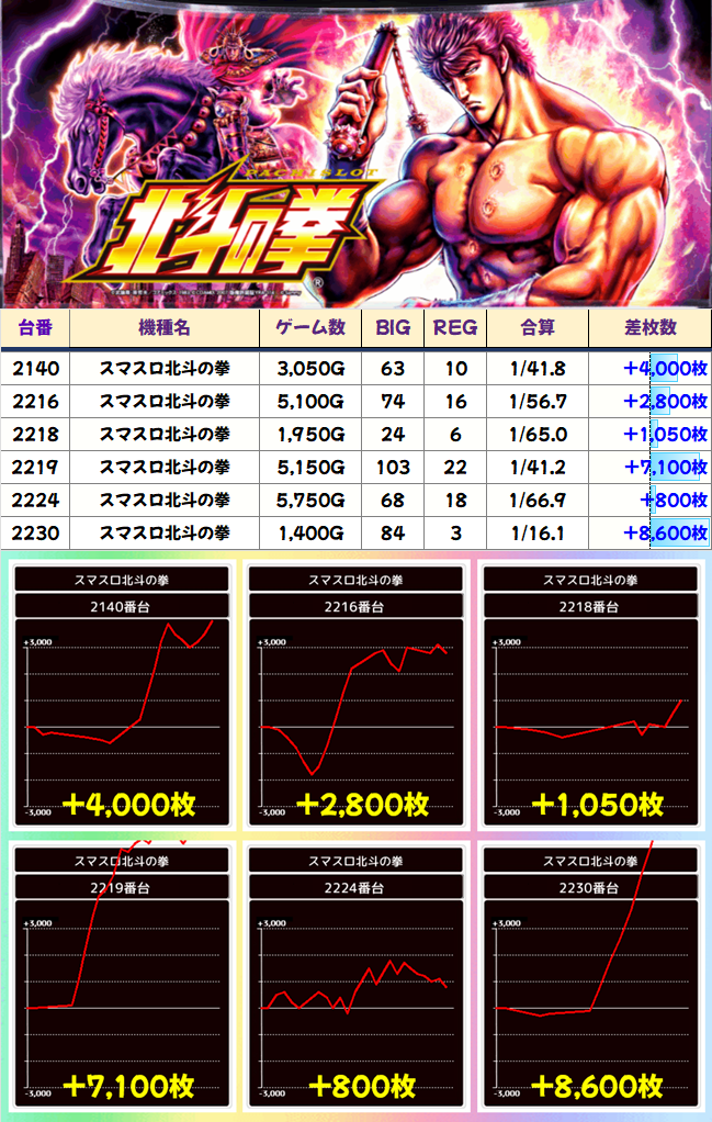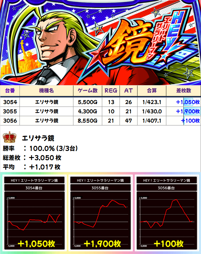 +100枚で終わった台は終日8500Gのフル稼働なので、粘る根拠があったと思われます。