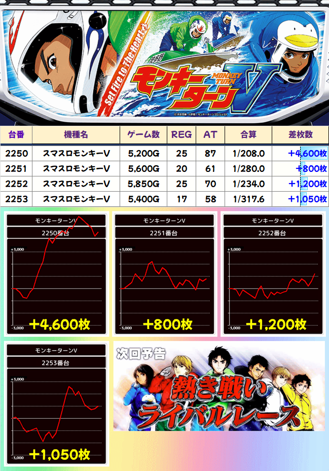 3台並びの可能性もありそうですが、2250から2252番台は初当りが良いのでモード移行関連が優秀と思われます。