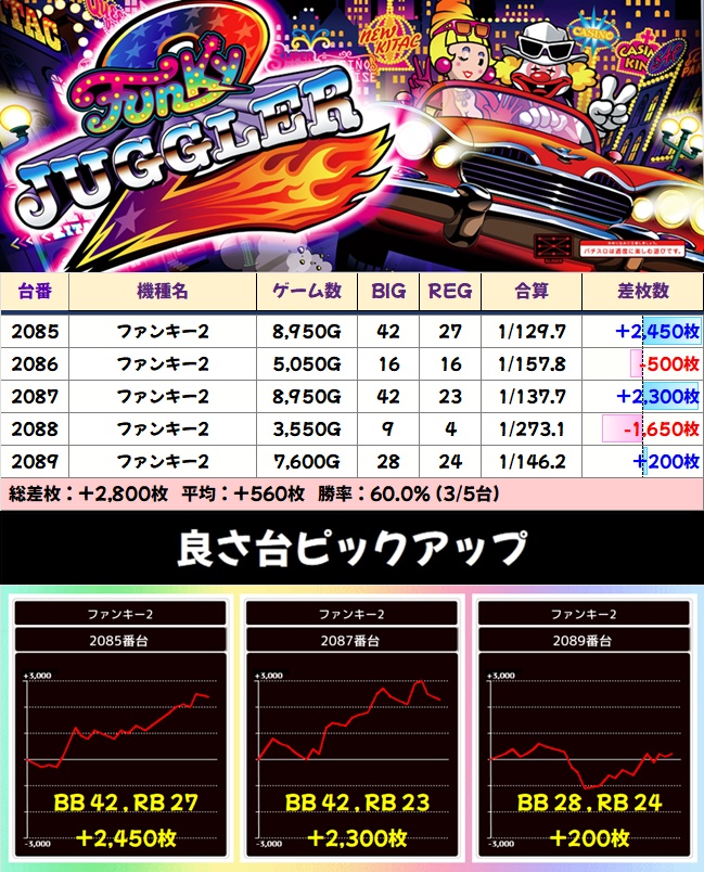 【高配分】ファンキー2(5台)|平均:+560枚