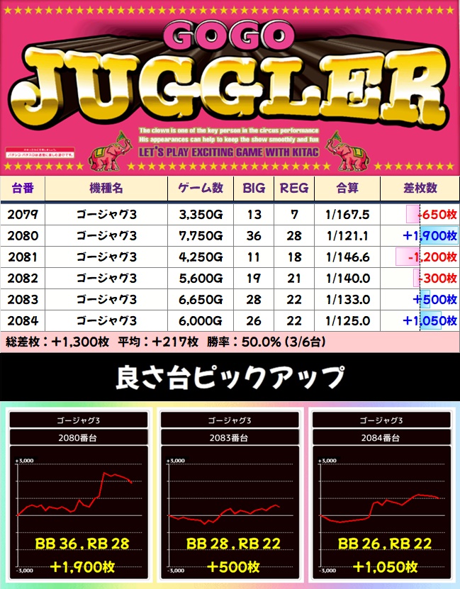その他のジャグ系も安定した結果となり、「⑤の付く日」のジャグ系のアツさが証明される結果となりました。