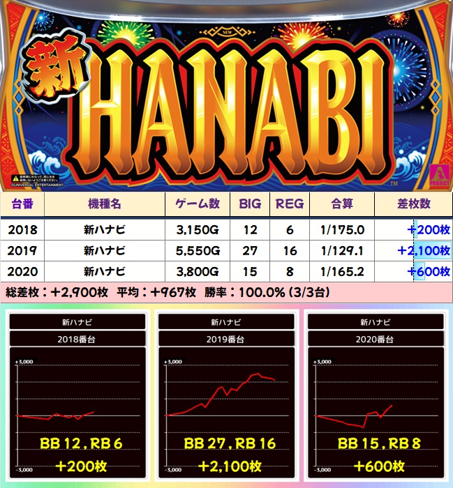 【全台系濃厚】新ハナビ(3台)|平均:+967枚