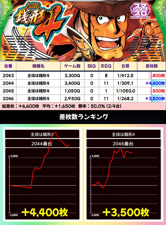 +4400枚・+3500枚が飛び出す、超優秀な結果となりました!
