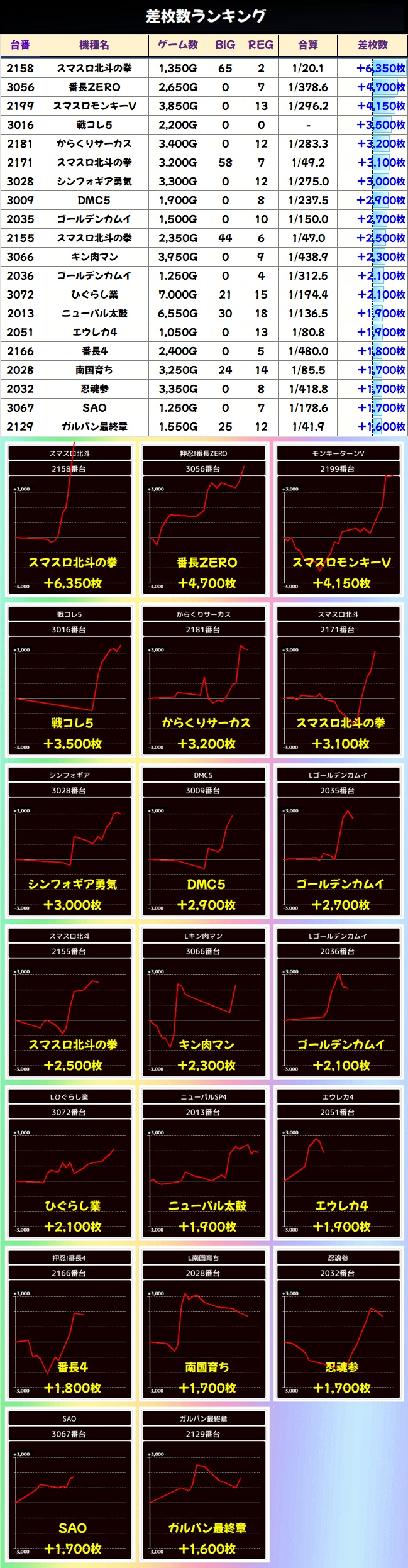 ファンキー2からは+2450枚・+2300枚、アイムからは+3200枚・+2450枚と優秀台が多数!